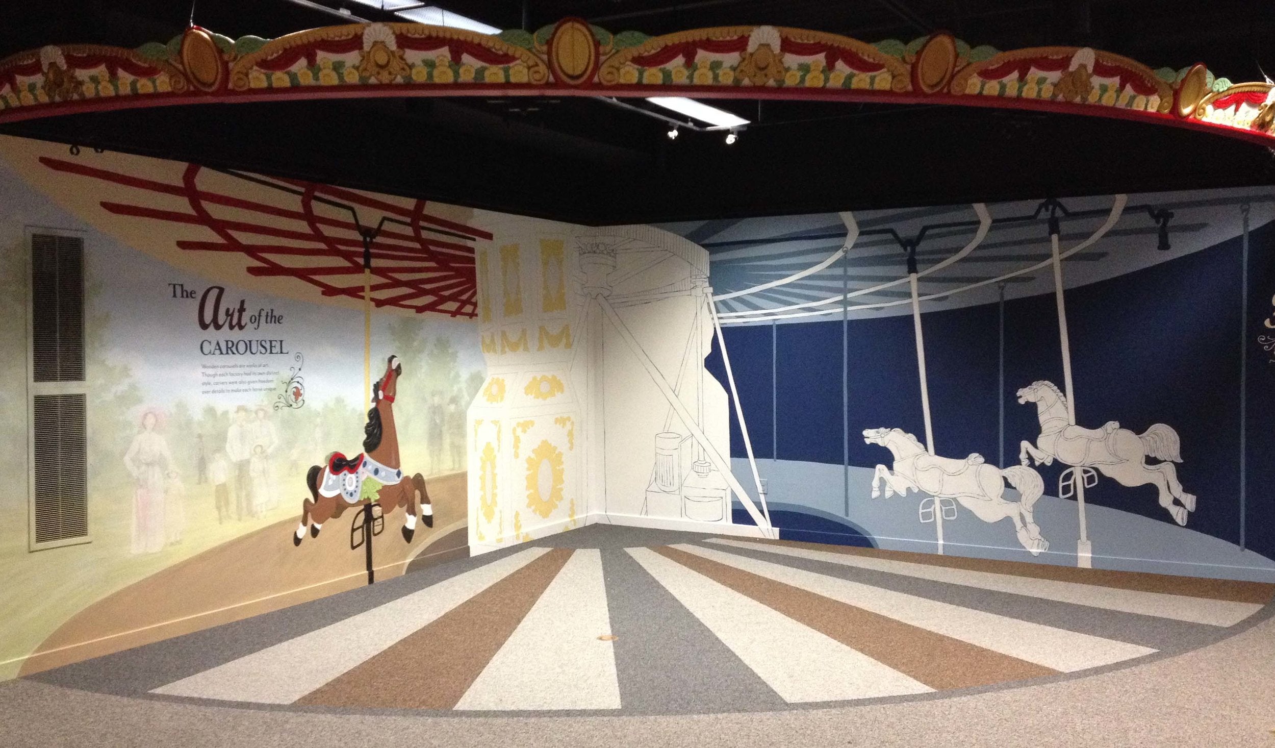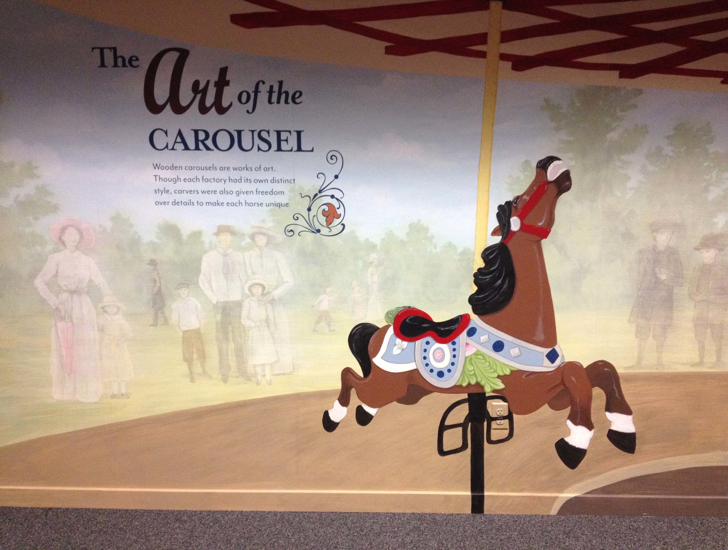 I regularly prepare permanent and seasonal exhibits, carry out bi-annual restoration painting of the 1929 C.W. Parker carousel horses, collaborate in designing interactive exhibits, and design/fabricate 2&3- D props, décor, murals, permanent signage for buildings, way-finding maps, and vintage advertising.