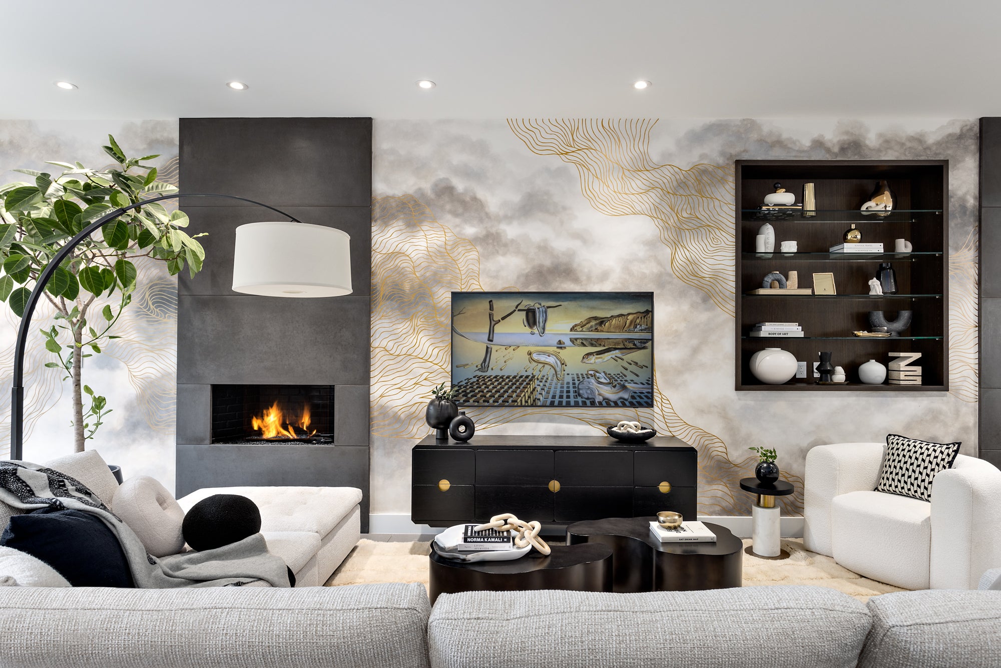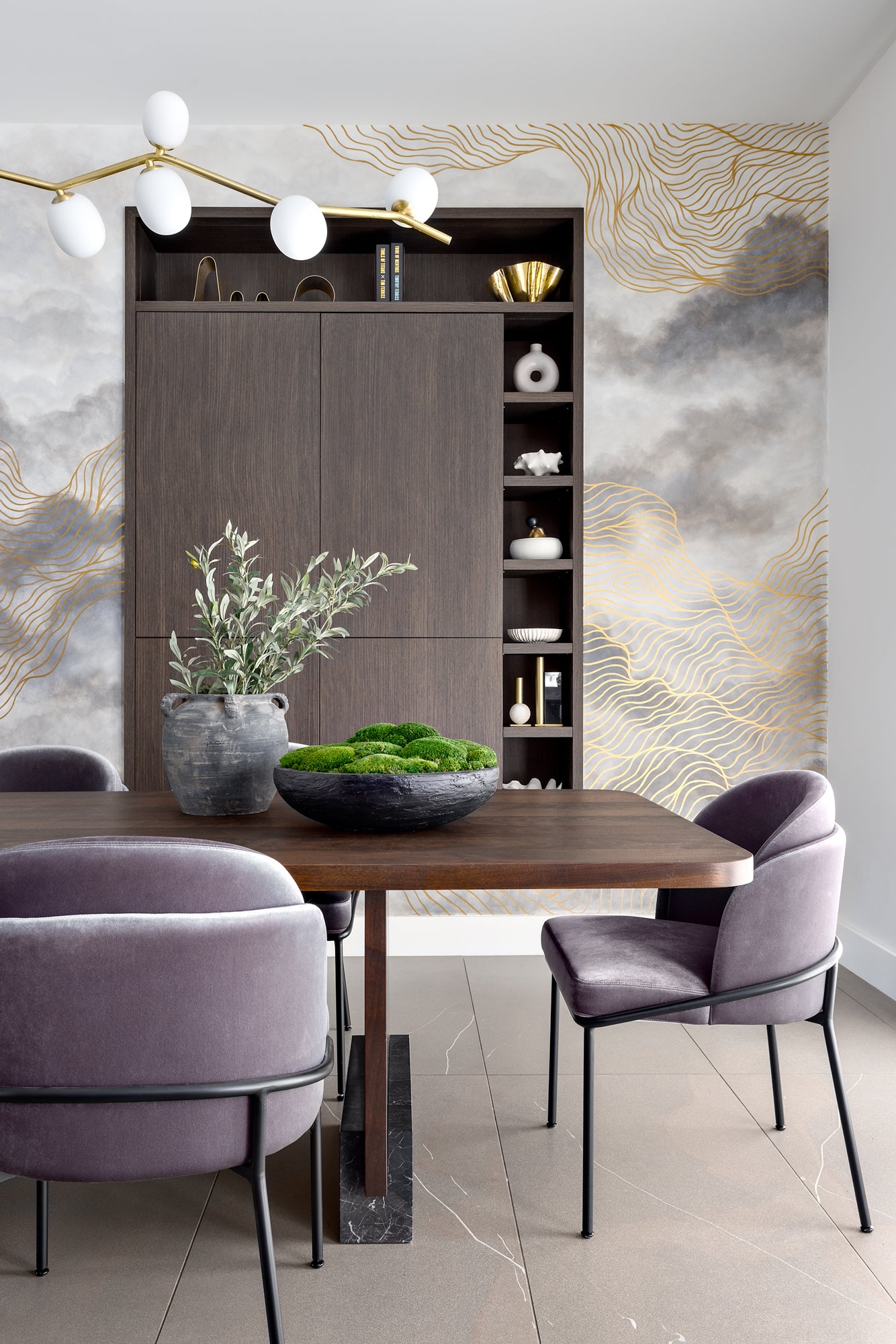 2023 Moody cloudscape with metallic gold detailing custom designed for a Vancouver private residence.