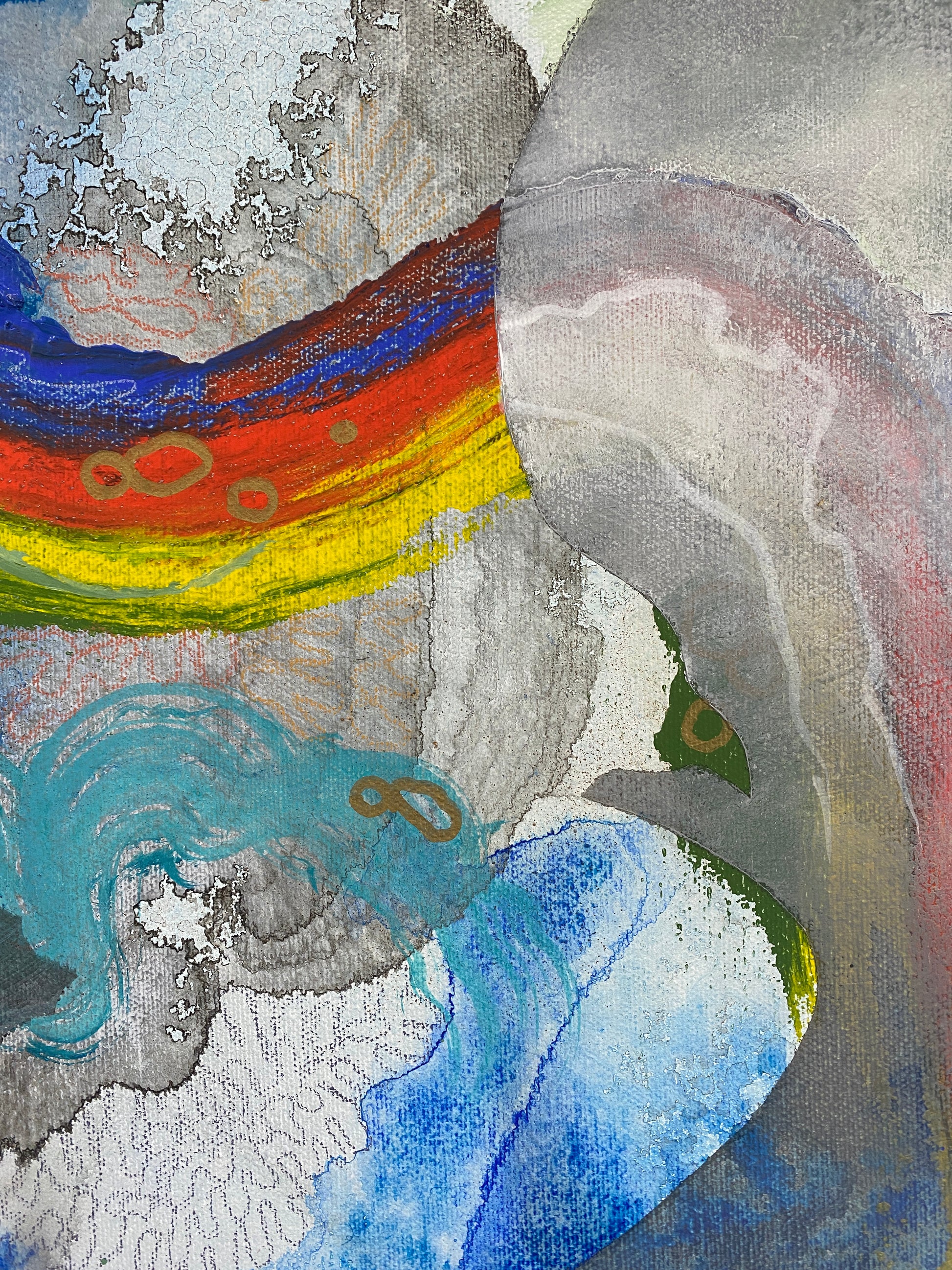This painting wraps around the sides of a deep canvas that is back-wrapped for a clean presentation for display option without framing. It's a Canadian-made canvas, 100% pure cotton stretched on 1½″ deep basswood stretcher bars.