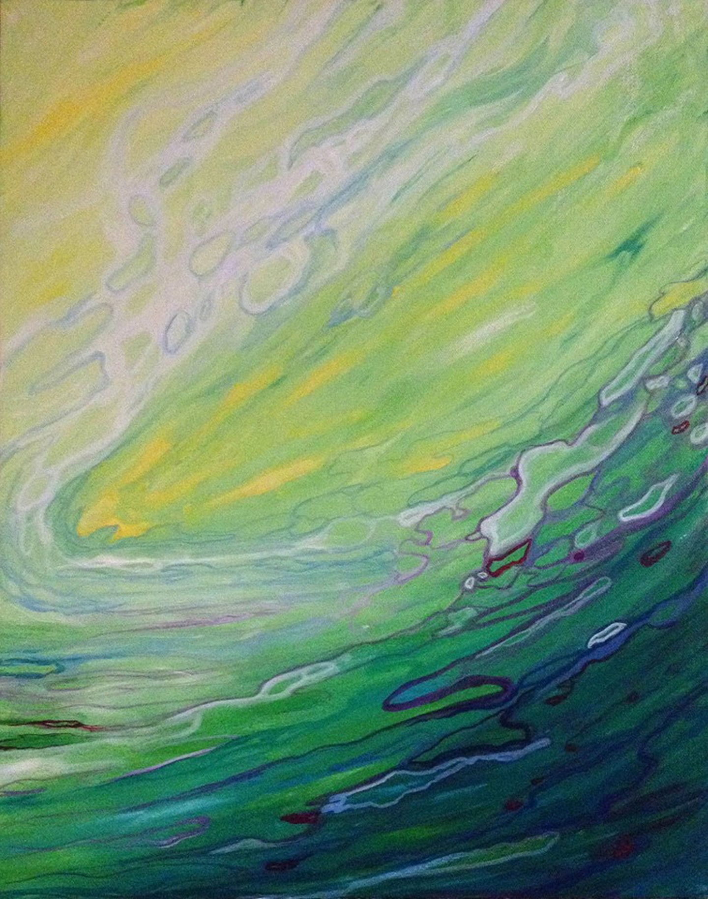 Caribbean dream is an intuitive painting inspired by the invigorating spirit of the tropics - adventuring through the vibrant lush green jungle, hearing the echoes of beautiful wild creatures surrounding me and diving into the warm soothing waves of the ocean, an amazing experience manifested for through this painting itself!